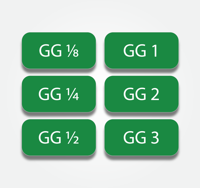 The set consists of GG 1/8, 1/4, 1/2, 1, 2 & 3 strengths.