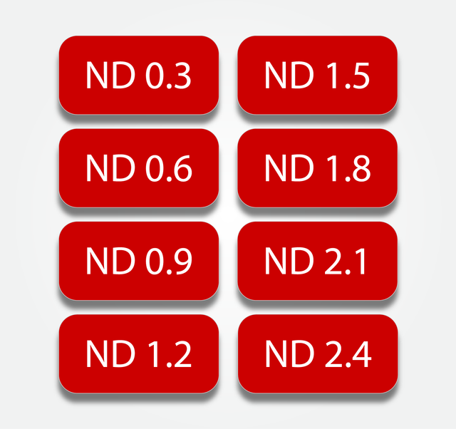 Set consists of ND in 0.3-2.4 strengths.